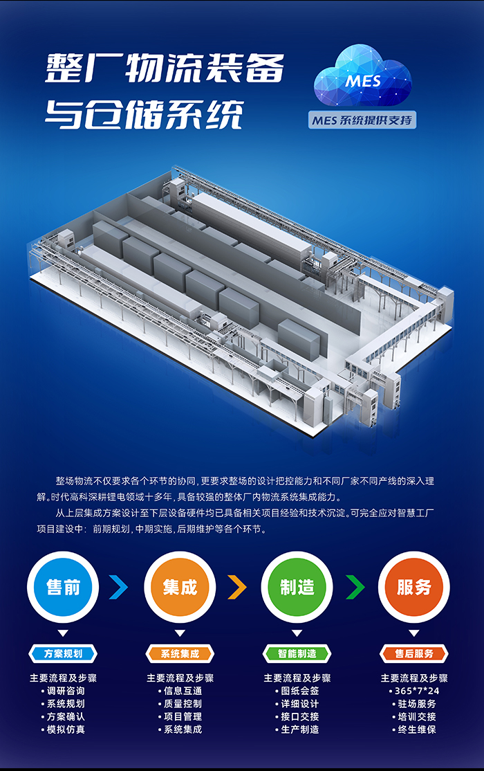 整廠物流裝備與倉儲系統(tǒng)將整個動力鋰電池生產(chǎn)的各環(huán)節(jié)全部合理連接,通過存儲設(shè)備、輸送設(shè)備、裝盤區(qū)設(shè)備、NG站等專機,并采用先進的機器人進行物料搬運,從電芯卷繞到最終成品,大大減少人工,甚至取代人工,實現(xiàn)了電池生產(chǎn)全工藝過程的自動化、智能化,達到生產(chǎn)企業(yè)預(yù)期的指標(biāo),幫助電池企業(yè)打造真正的智能車間。